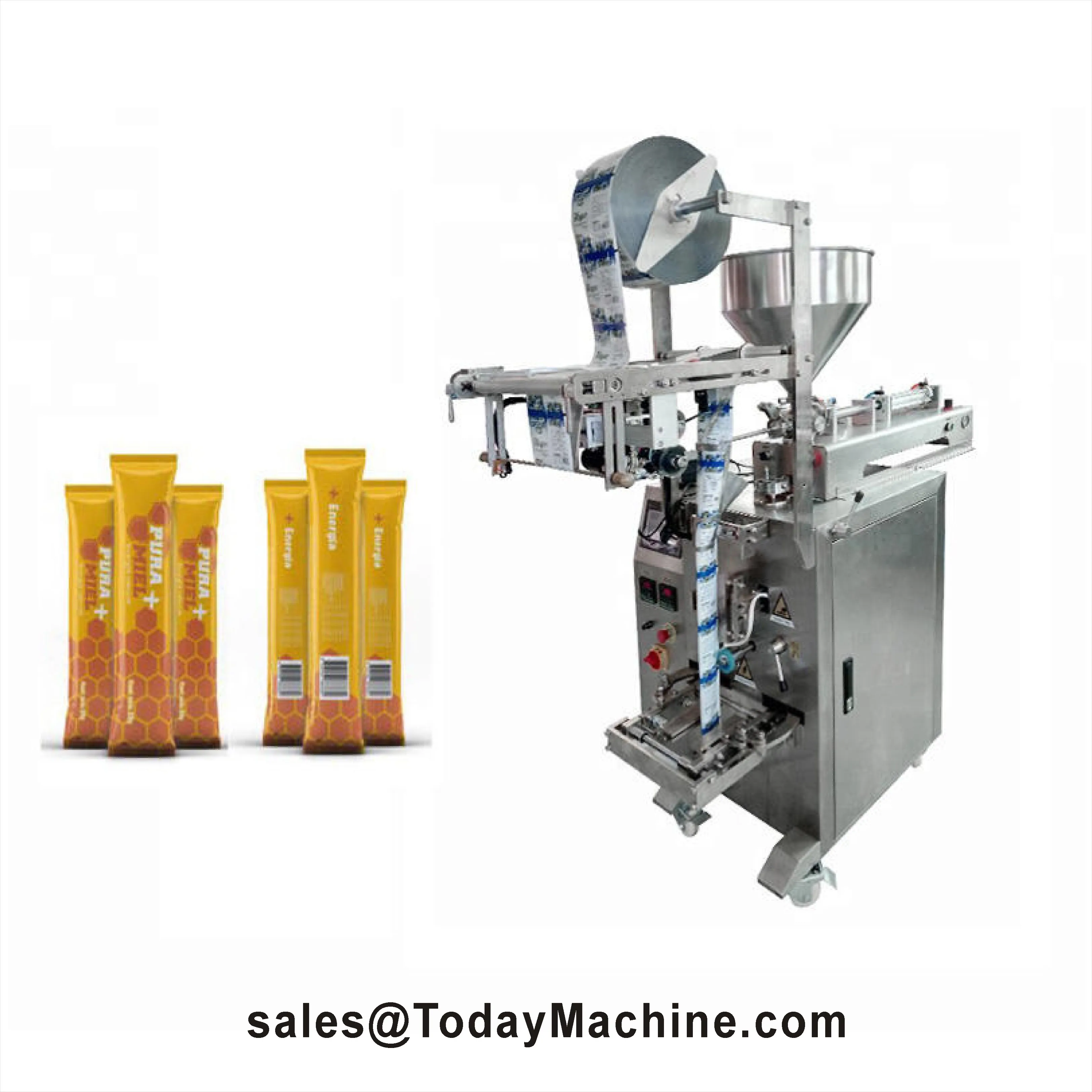 Máquina de Embalagem e Enchimento de Sachês de Formato Irregular para Líquidos, Geleias, Mel e Sucos Totalmente Automática
