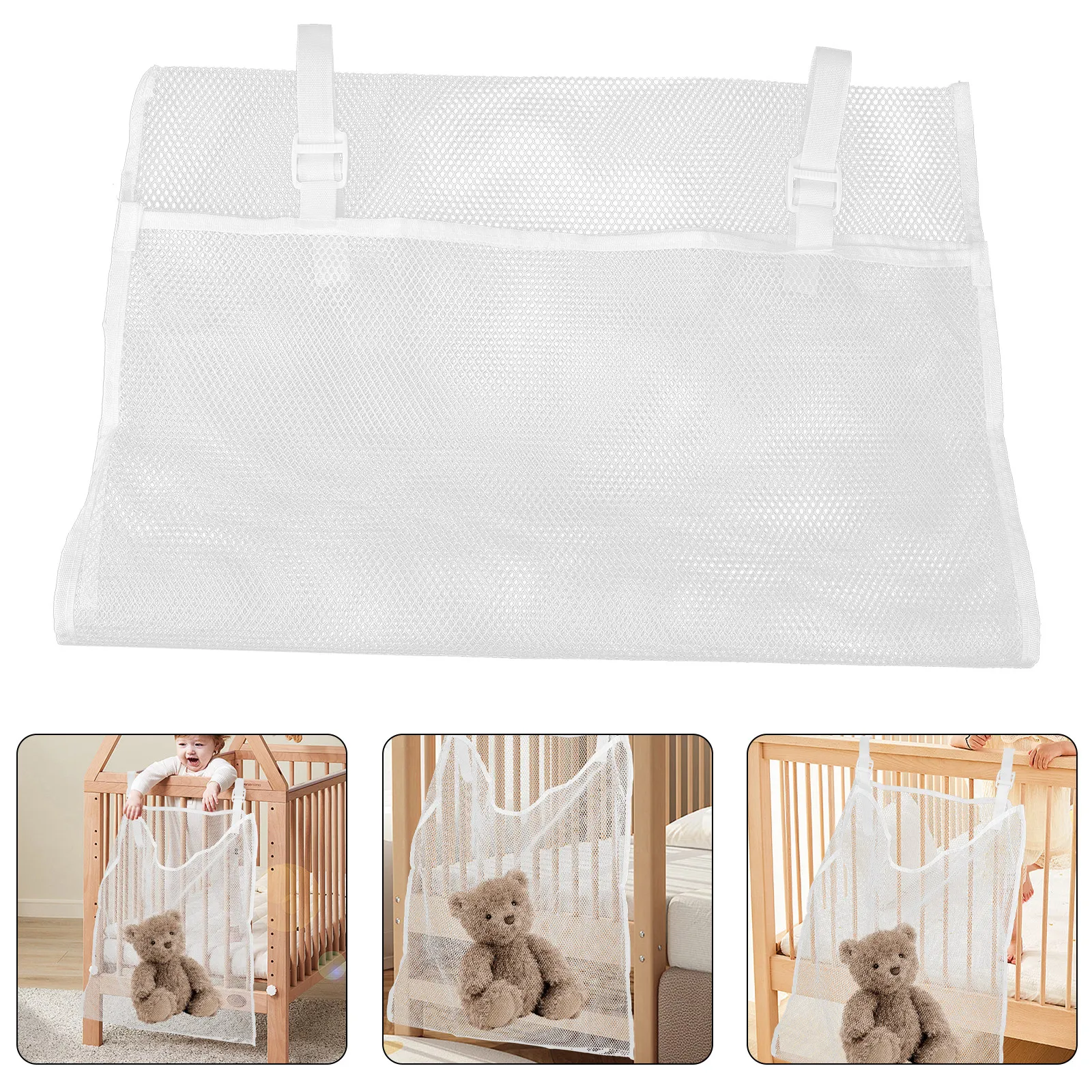 Bolsa Suspensa para Berço de Bebê Rosa, Organizador de Armazenamento em Malha para Fraldas e Roupas, Bolsa Suspensa Respirável para Berçário com Alça Ajustável