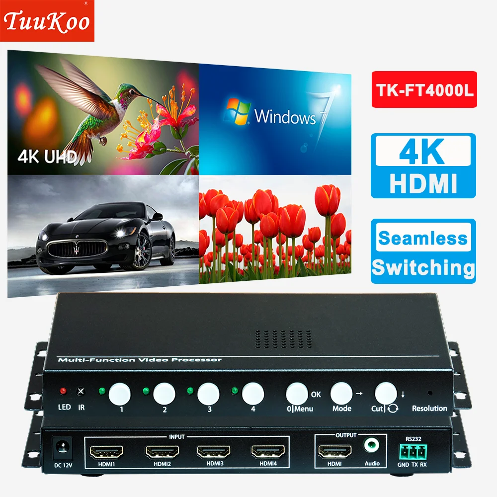 Multiviewer HDMI 4K Quad Screen POP PIP Qualquer Layout 4x1 4K 4 em 1 Saída HDMI Multi Viewer Qualquer Layout Comutador Sem Costura