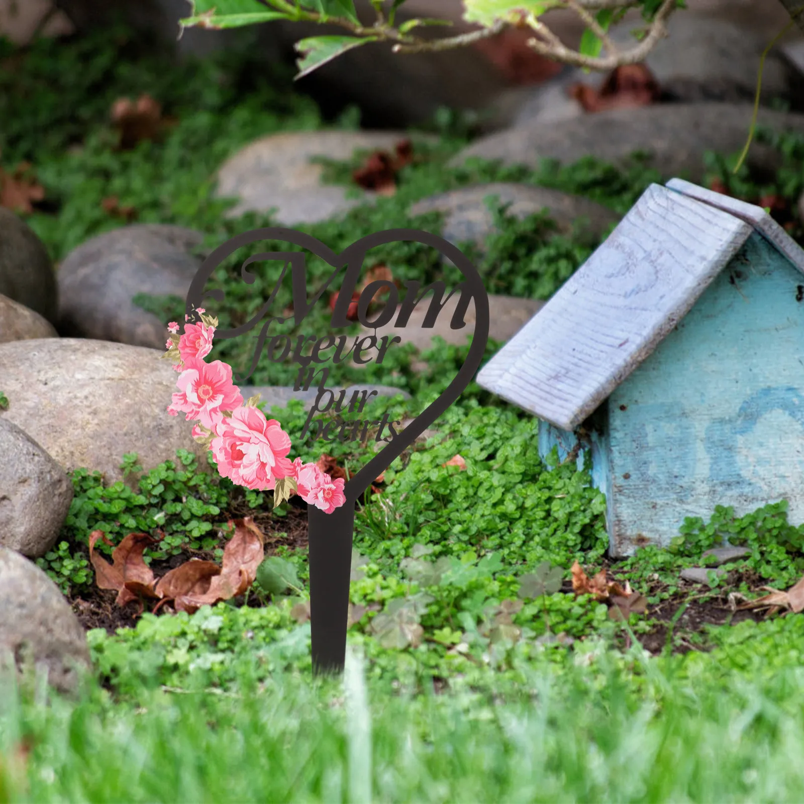 Placa Memorial de Metal Impermeável para Jardim, em Formato de Coração, para Sepultura, Decoração de Cemitério, Homenagem à Mãe