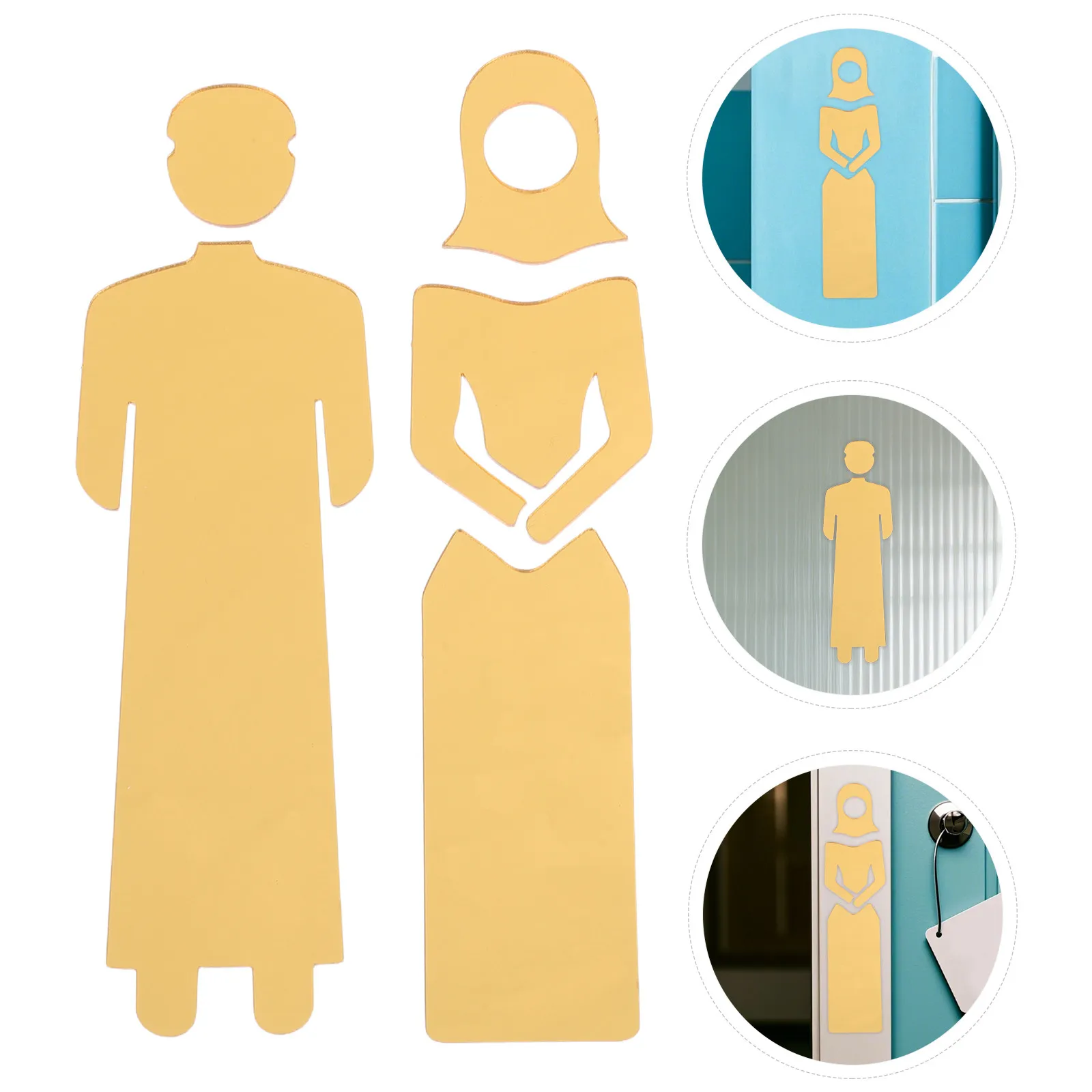 Conjunto de 2 Placas Modernas de Acrílico para Banheiro com Acabamento Espelhado Dourado, Sinalização Decorativa para Portas de Banheiros de Igrejas e Banheiros Públicos