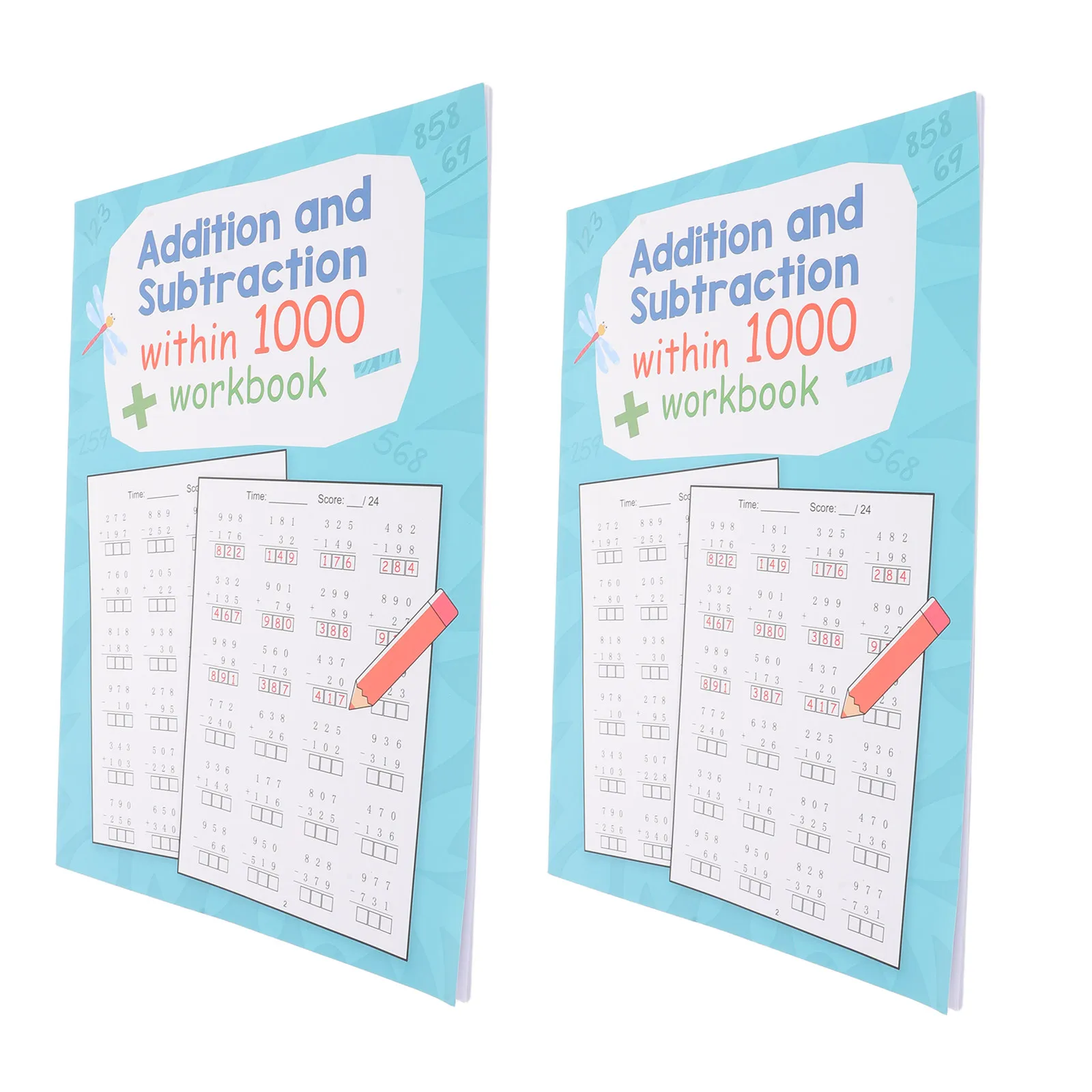 2 livros de exercícios de matemática para crianças: folhas de prática de operações mistas, adição, subtração, exercícios diários, aritmética elementar