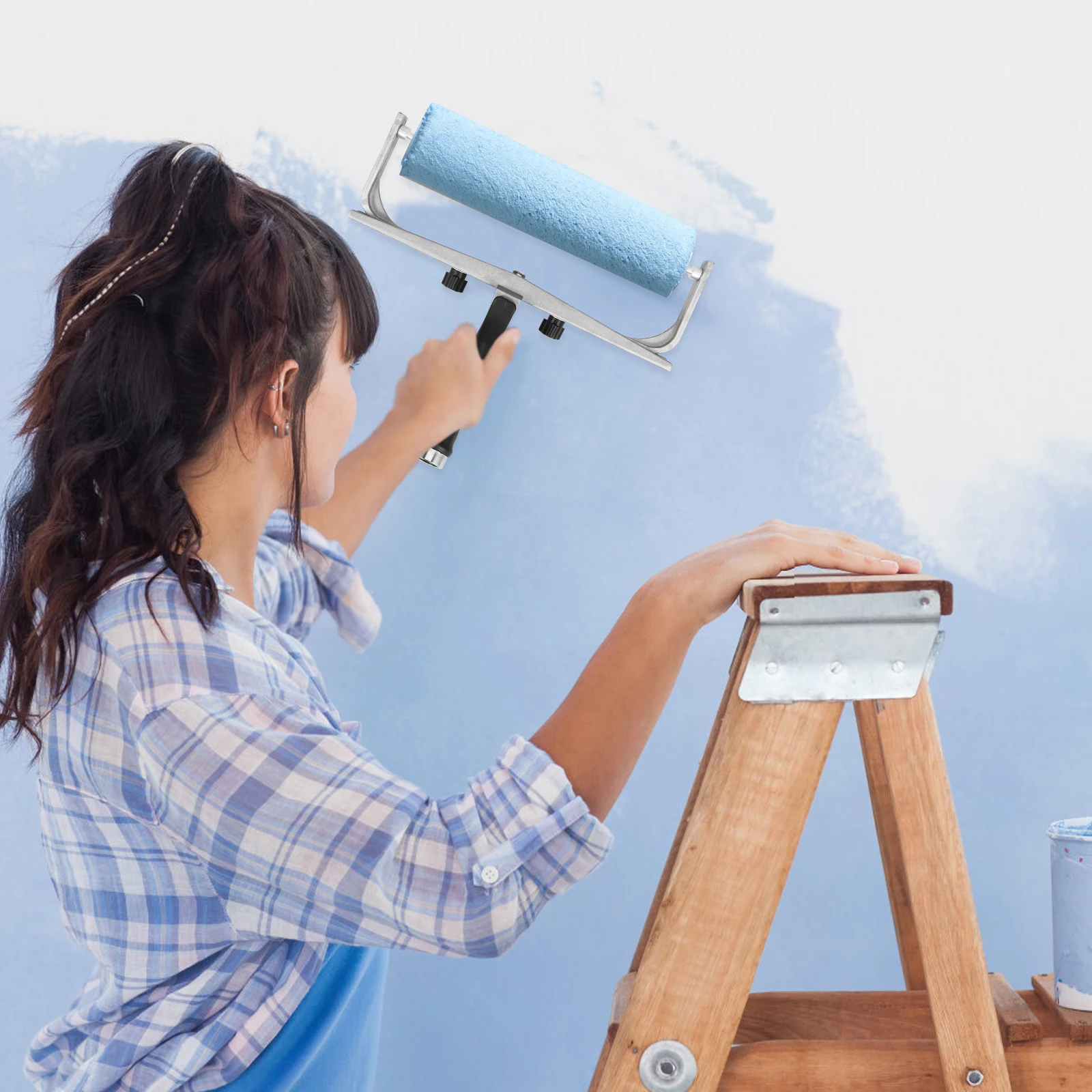 Suporte ajustável para rolo de pintura, estrutura de metal reutilizável para pintura de parede e teto, cabo leve, fácil montagem, ferramentas de pintura