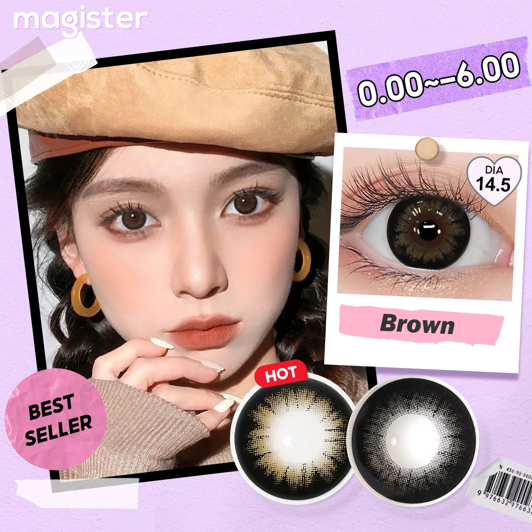 (0,00 ~-6,00) Lentes de contato alimentadas por Magister 14,5 mm para olhos grandes Estilo clássico Lentes de contato pretas/marrons para miopia 6 meses