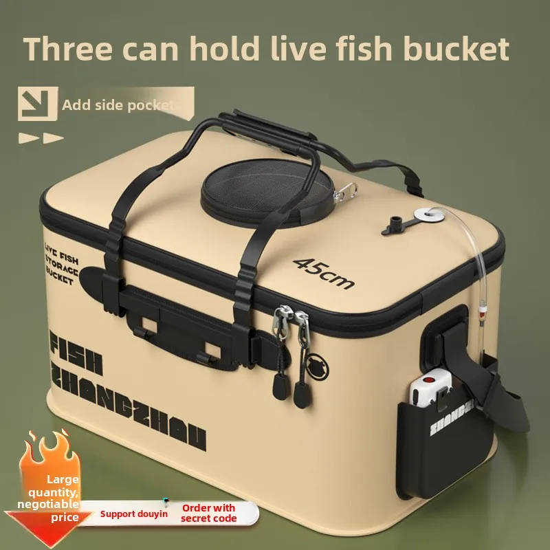 Balde de peixe vivo portátil engrossado, caixa dobrável ao ar livre, balde de peixe de grande capacidade, saco de peixe vivo, suprimentos de artes de pesca