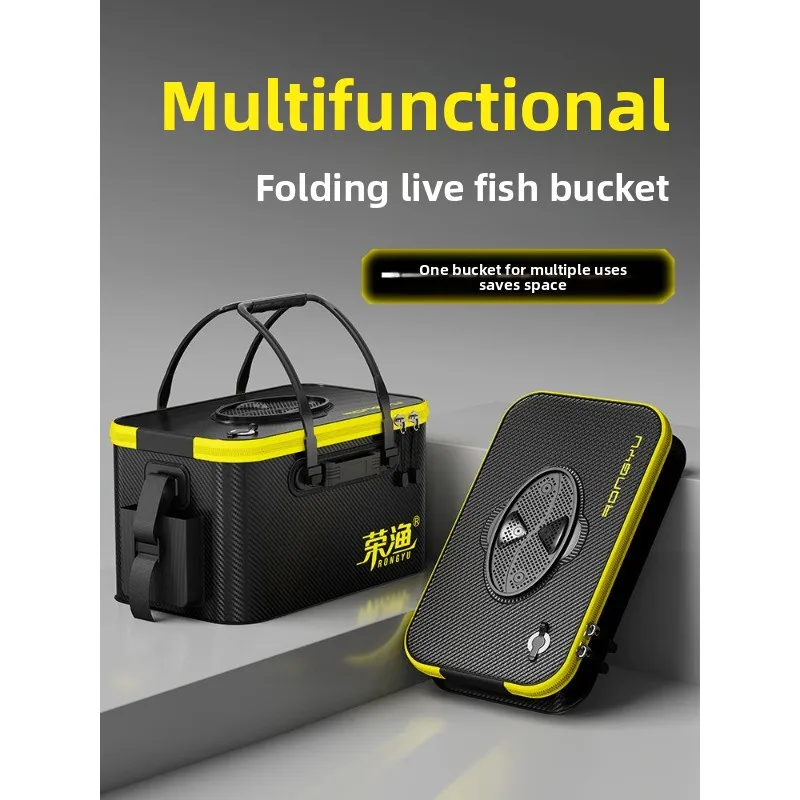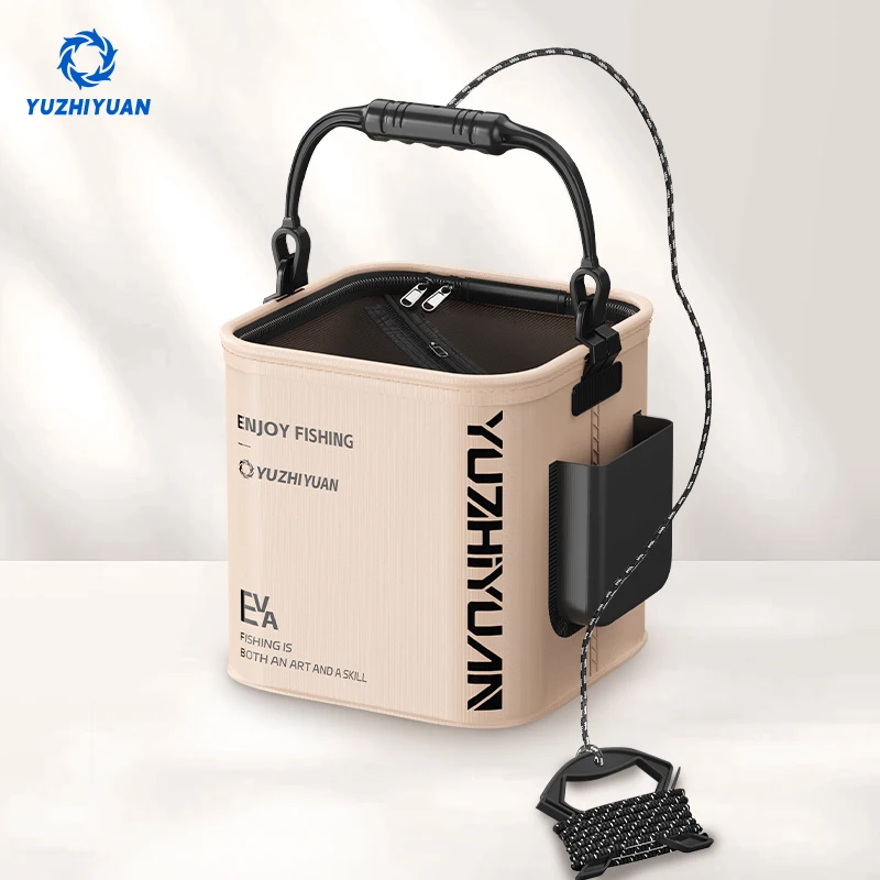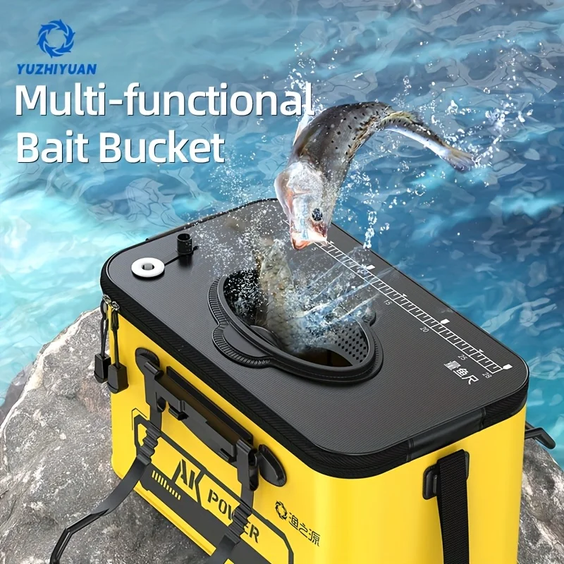Balde de isca dobrável Yuzhiyuan, balde de peixe vivo, balde de água durável – portátil para acampamento e pesca ao ar livre, bolsa de equipamento de pesca