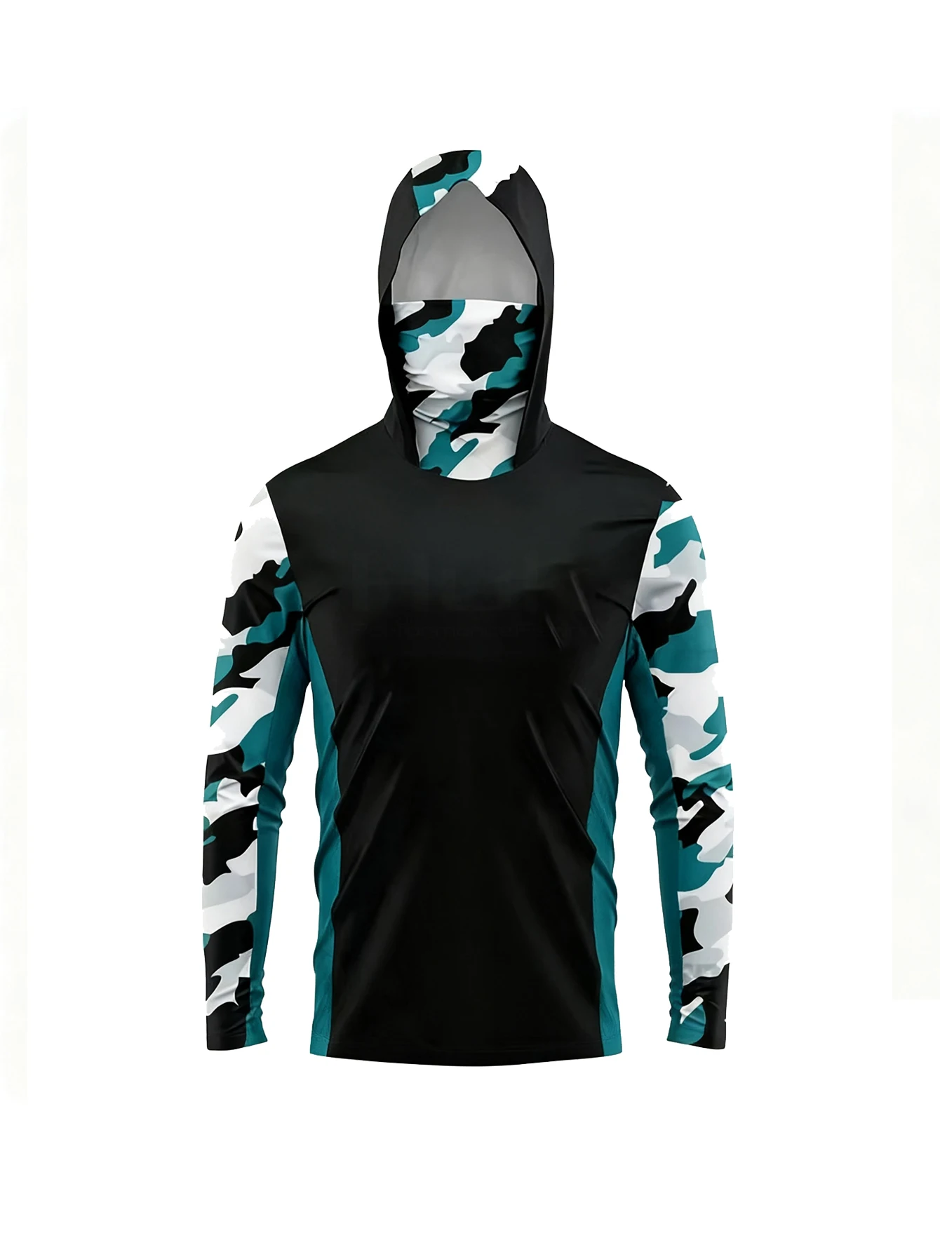 Camisas de Pesca Masculinas de Manga Longa, Blusas de Praia, Roupas UV para Atividades ao Ar Livre, Casaco com Capuz Respirável, Moletons de Pesca com Máscara