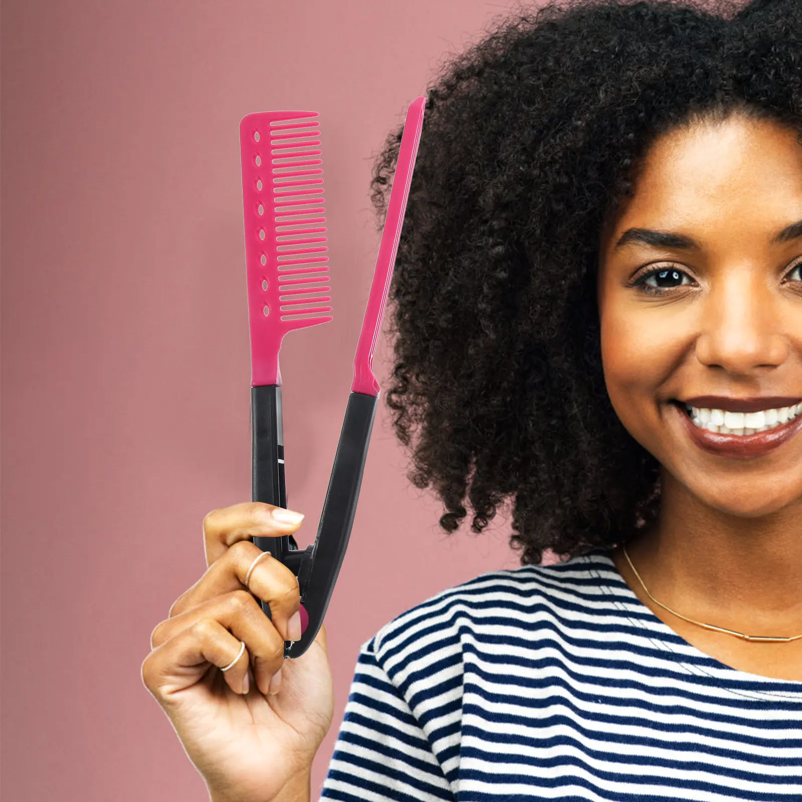 Conjunto de 3 Pentes Alisadores de Cabelo Dobráveis em Formato V Ergonômicos e Compactos para Uso Profissional em Salões de Beleza