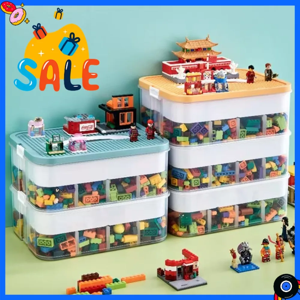Bloco de construção empilhável de grande capacidade caixa de armazenamento dividida transparente à prova de poeira e resistente à umidade caixa de armazenamento de plástico
