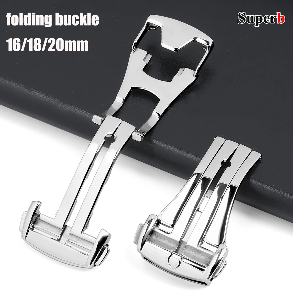 16mm 18mm 20mm 22mm fivela de relógio borboleta de aço inoxidável dupla pressão dobrável fecho de relógio substituição para pulseira de relógio silcone