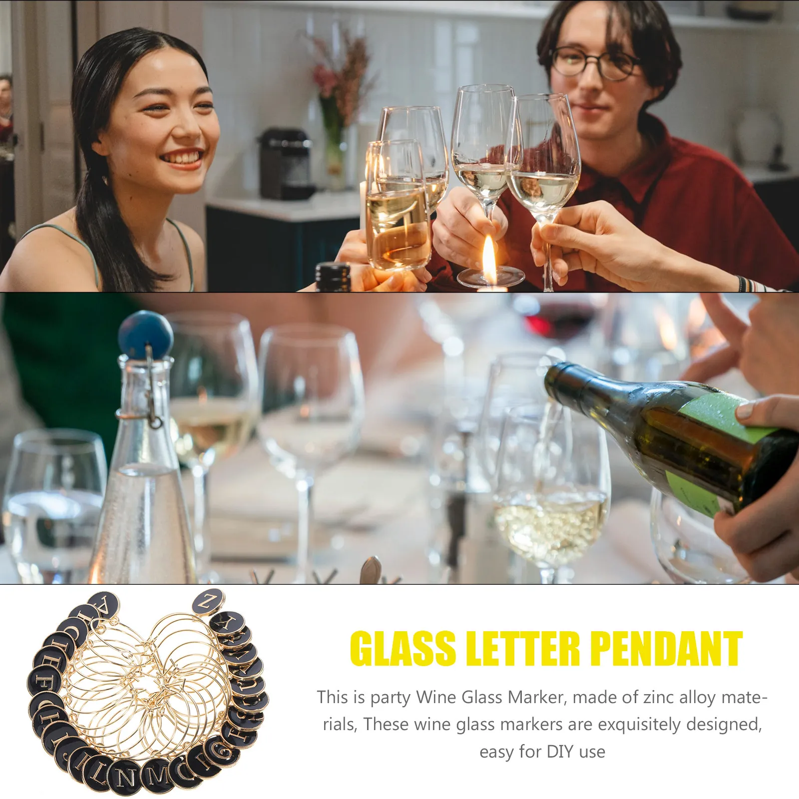 26 Marcadores de Taças de Vinho em Liga de Zinco com Letras, Reutilizáveis, para Festas, Suprimentos de Vinho, Etiquetas Decorativas para Bebidas, Marcadores de Copos para Eventos