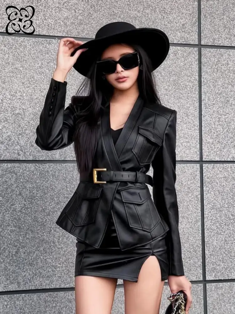 Isarose estilo wasteland cardigan para mulher punk primavera outono cor sólida alargamento mangas compridas frente rendas plissado rasgado topos