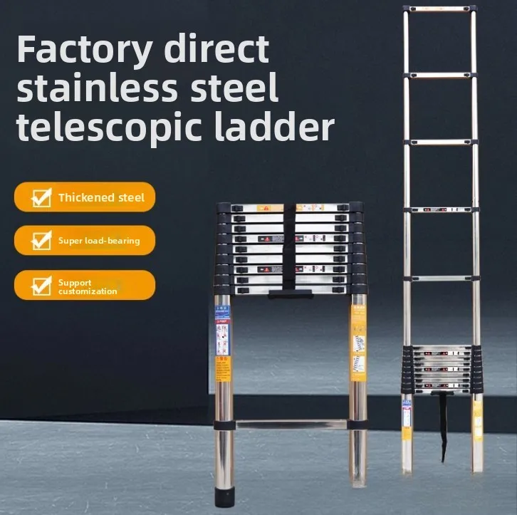 Escada telescópica de aço inoxidável, escada reta de um lado, escada de engenharia, escada de bambu espessada, elevador telescópico