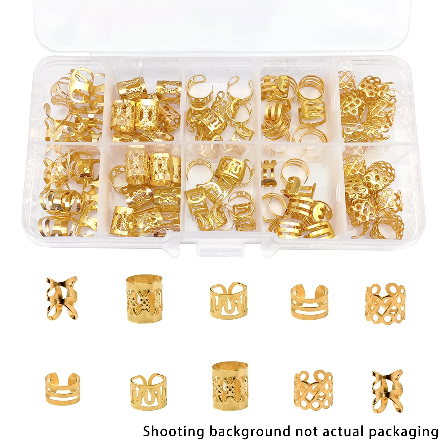 Conjunto misto de trança de liga 50 peças, trança de acessório de dreadlock de cabelo, anel de cabelo para decoração de joias de acessório dreadlock (sem caixa)