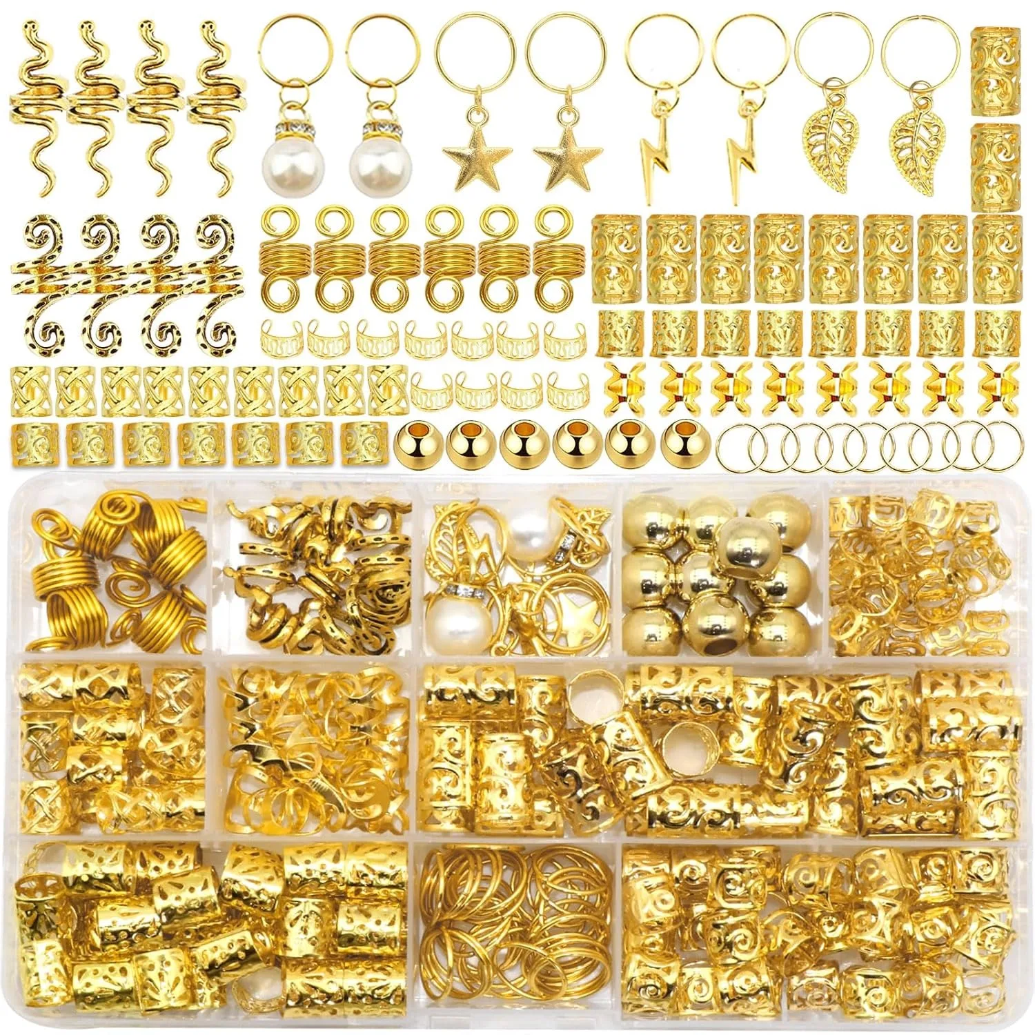 220 peças joias de cabelo elegantes de liga dourada para trança cor sólida-acessórios inspirados em vintage para dreadlocks masculinos e femininos para festa