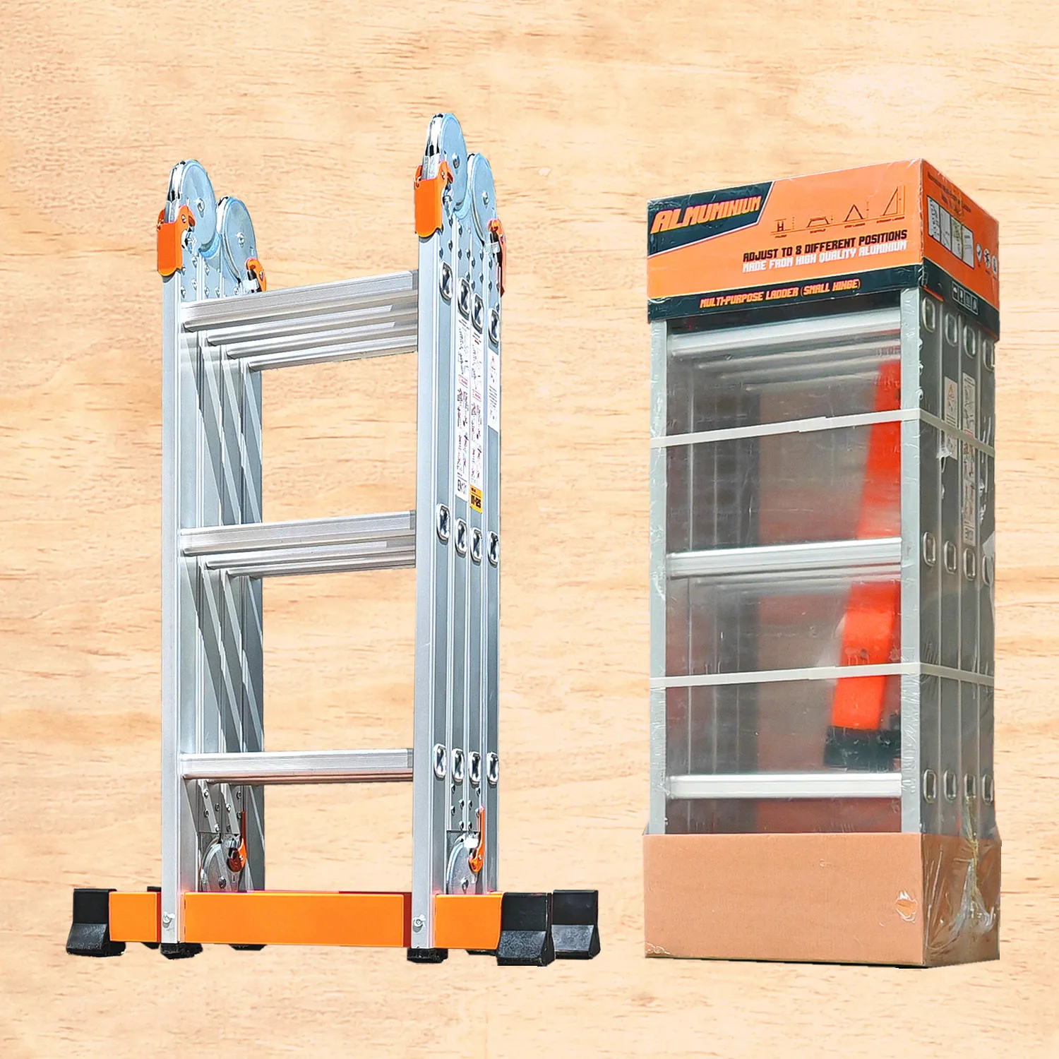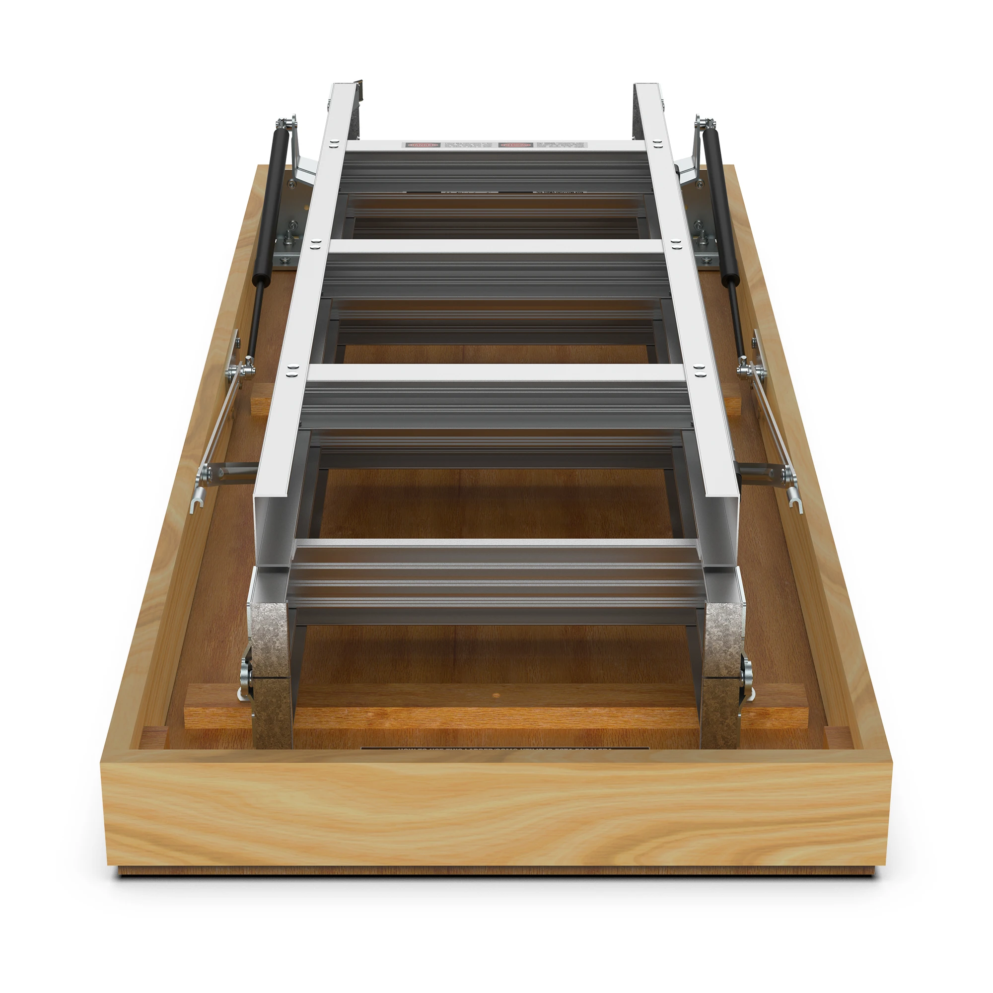 Tomada de fábrica fácil instalação escada telescópica loft resistência ao deslizamento passos alumínio dobrável sótão escada corrimão