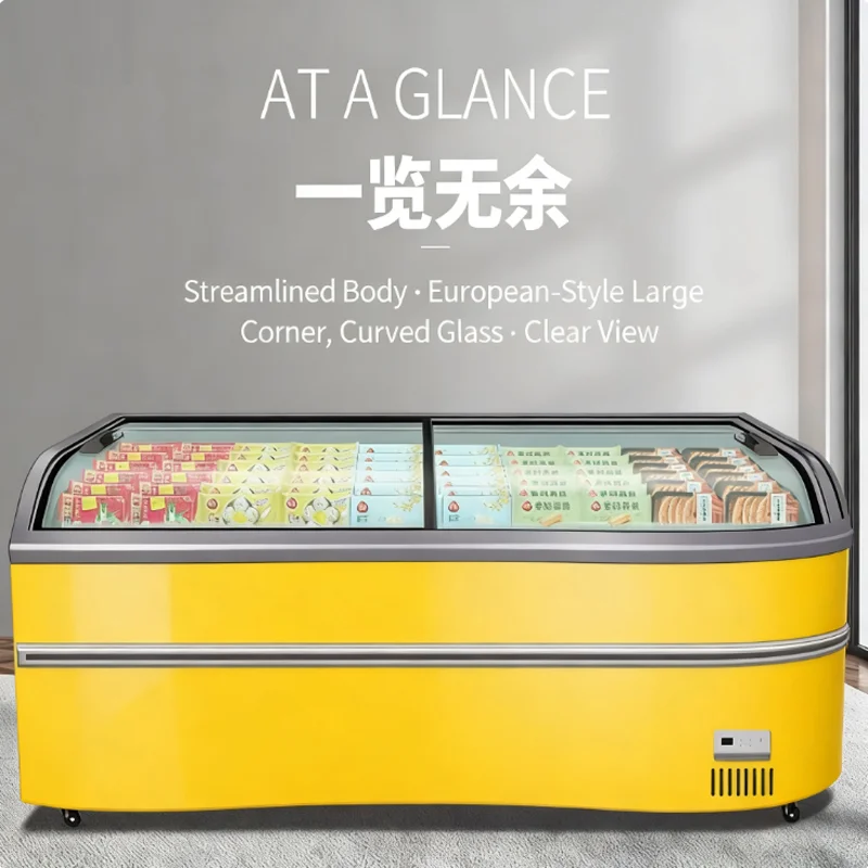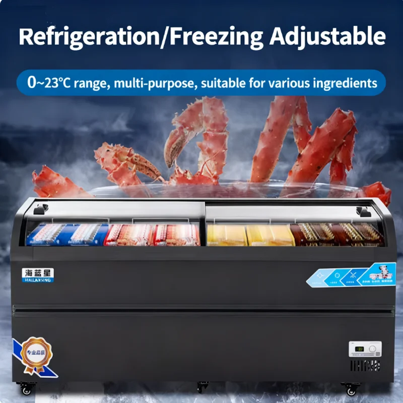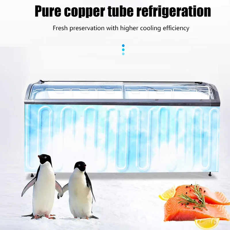 Congelador do armário do supermercado do refrigerador da carne do congelador da ilha de peixes com porta deslizante superior de vidro