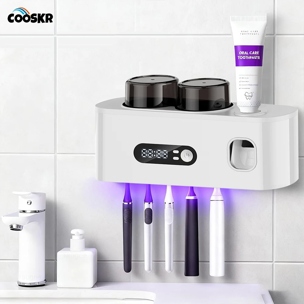 Zai xiao suporte de escova de dentes uv montado na parede com ventilador de secagem desinfetante de escova de dentes inteligente luz noturna indutiva banheiro acc