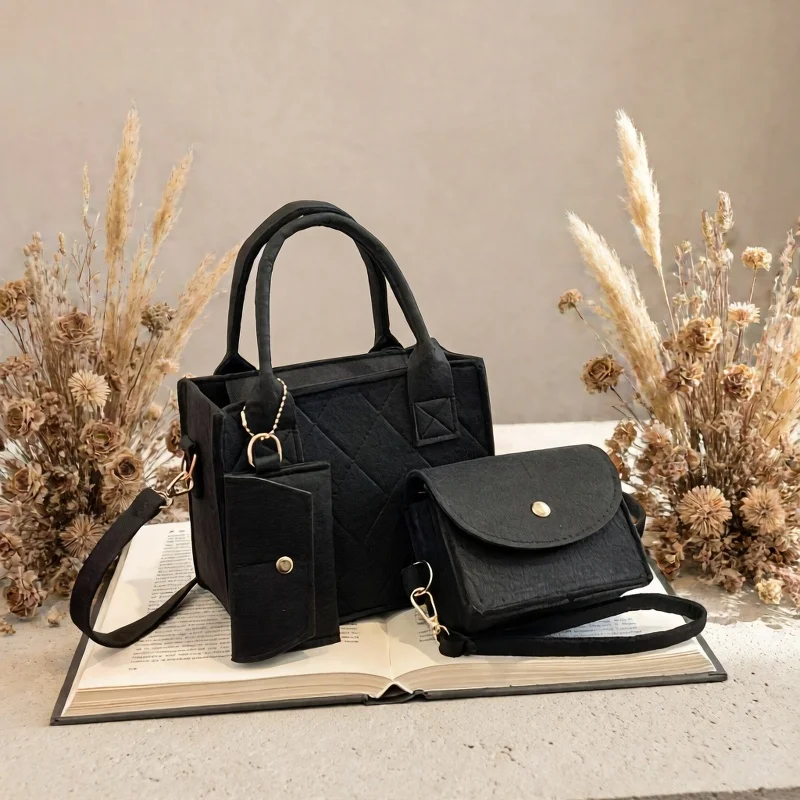 Conjunto de 3 Bolsas Mini Tote Acolchoadas, Bolsa Feminina com Porta-Cartões e Alça de Pulso, Bolsa Transversal Versátil