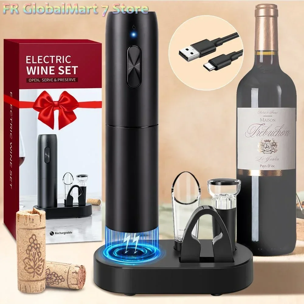 Abridor de garrafa de vinho elétrico saca-rolhas automático de vinho tinto com base de carregamento ou ferramentas de vinho alimentadas por bateria produtos de cozinha
