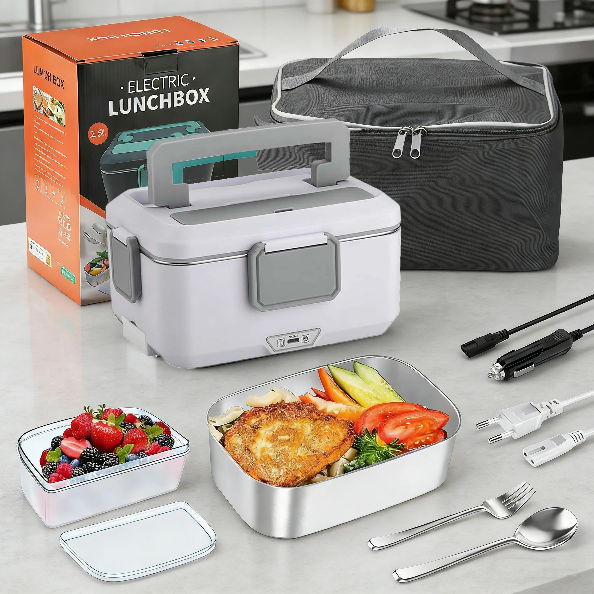 Marmita elétrica 2 em 1 à prova de vazamentos, aquecedor de alimentos portátil de 1,5/2/2,5 L, marmita bento para micro-ondas com recipiente de aço inoxidável.