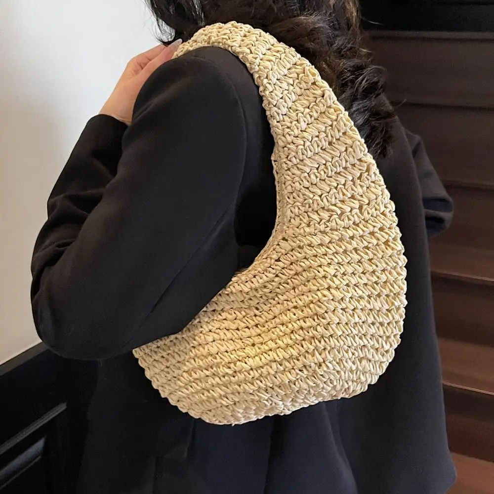 Bolsa de Palha Casual de Grande Capacidade, Bolsa de Mão de Rattan Simples e Moderna para Uso Externo