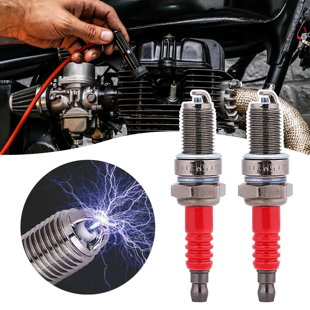Conjunto de velas de ignição para motocicleta, 2 peças, resistentes ao desgaste, duráveis, reduzemissões, substituição de velas de ignição para motores de dirt bike