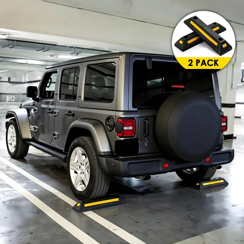 Calços de borracha antiderrapantes com design perfurado para carros, RVs e caminhões, para estacionamento, segurança de veículos em garagens, resistentes e portáteis.