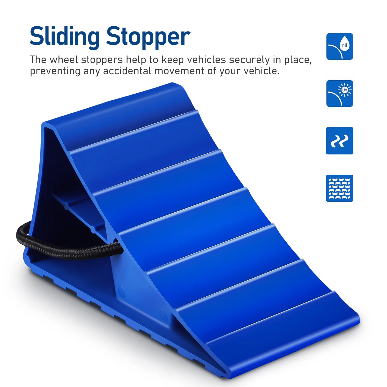 2 Peças Calços de Roda Antiderrapantes Reforçados para Carros, Caminhões, Reboques e RVs, Batentes de Pneu Robustos com Alça de Corda para Uso Interno