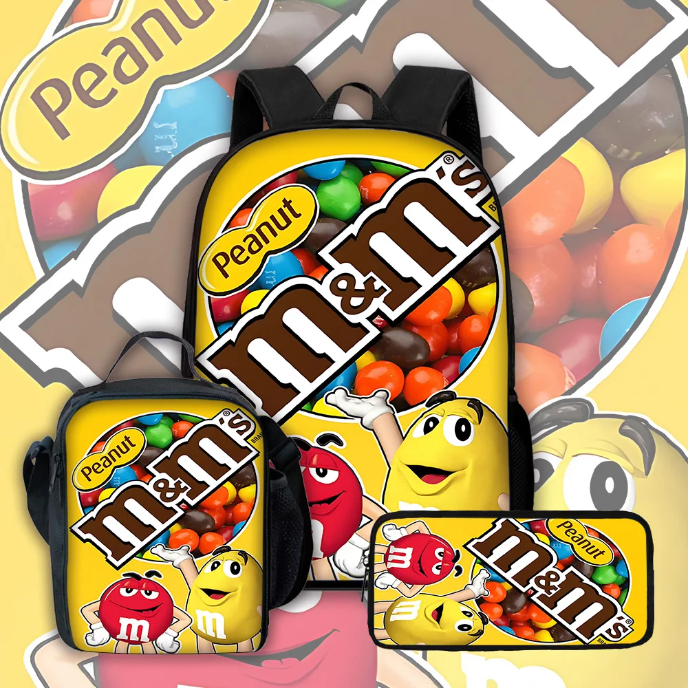 Mochila escolar infantil com logotipo de chocolate M-M&M, com sacolas para almoço, bolsas para lápis, mochilas escolares para meninos e meninas, melhor presente