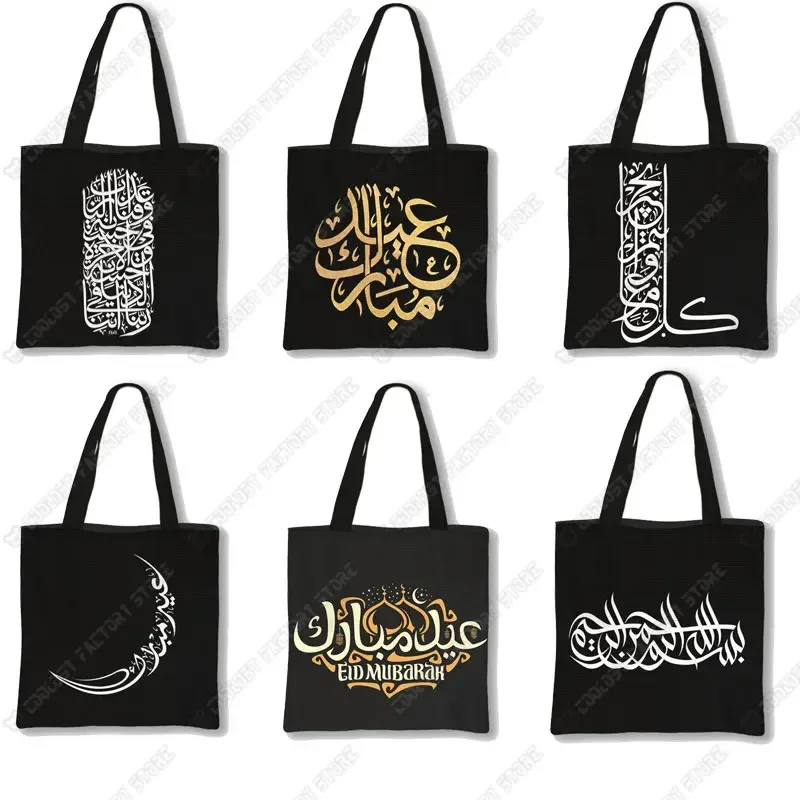 Sacola de lona para mulheres, Eid Mubarak, Ramadan Kareem, bolsa de ombro, muçulmana, festival islâmico, suprimentos para festas, bolsa