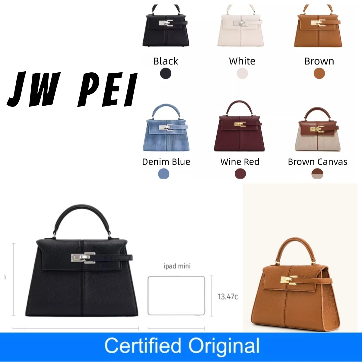 Jw pei nova marca quente mochila de mão feminina elise viagem designer moda nova denim multi funcional tote pequeno quadrado saco peito