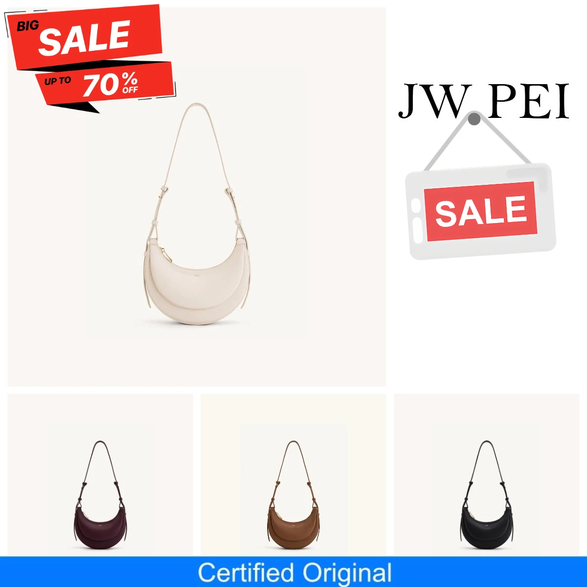 JW PEI Bolsa feminina meia lua crossbody elegante bolsa de ombro de couro vegano maquiagem vestido de noite crossbody bolsa de lazer elegante