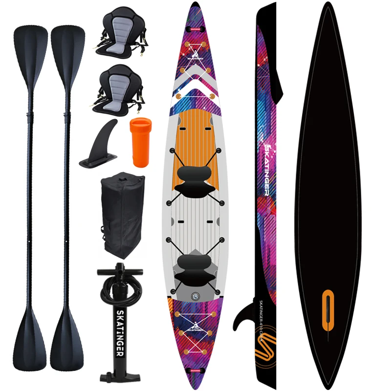 Caiaque Inflável Skatinger Drop Stitch para 2 Pessoas, Canoa Dobrável de 4m para Uso em Rios, Alternativa Barata para Canoa de 2 Pessoas com Assento Confortável