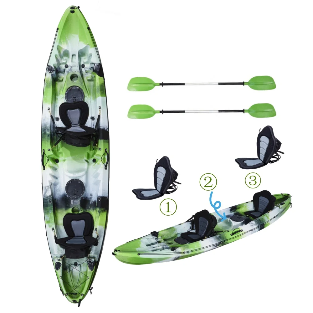 Caiaque Familiar de 12 pés com 3 Assentos, Caiaque Duplo para 2 Adultos e 1 Criança, Caiaque de Pesca Sit-on-top à Venda