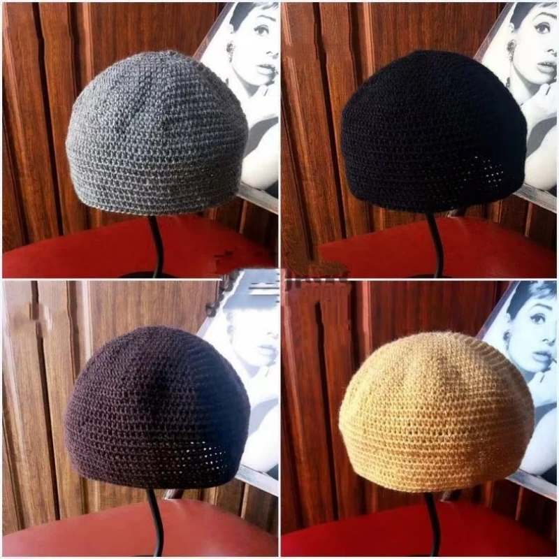 Inverno de malha muçulmano homens chapéus de oração unisex gorros boné quente islâmico ramadan judeu kippah homme chapéu envoltório cabeça bonés