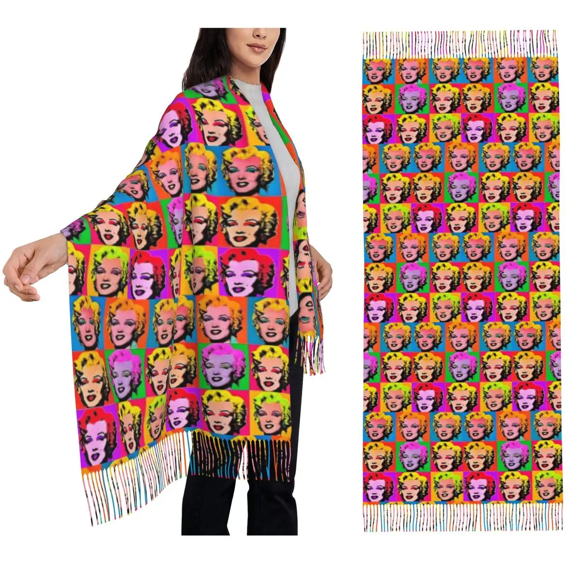 Andy Warhol- Marlyn Manroe Cachecol com borla feminino xales e quentes macios e envoltórios grande outono inverno xale envoltório