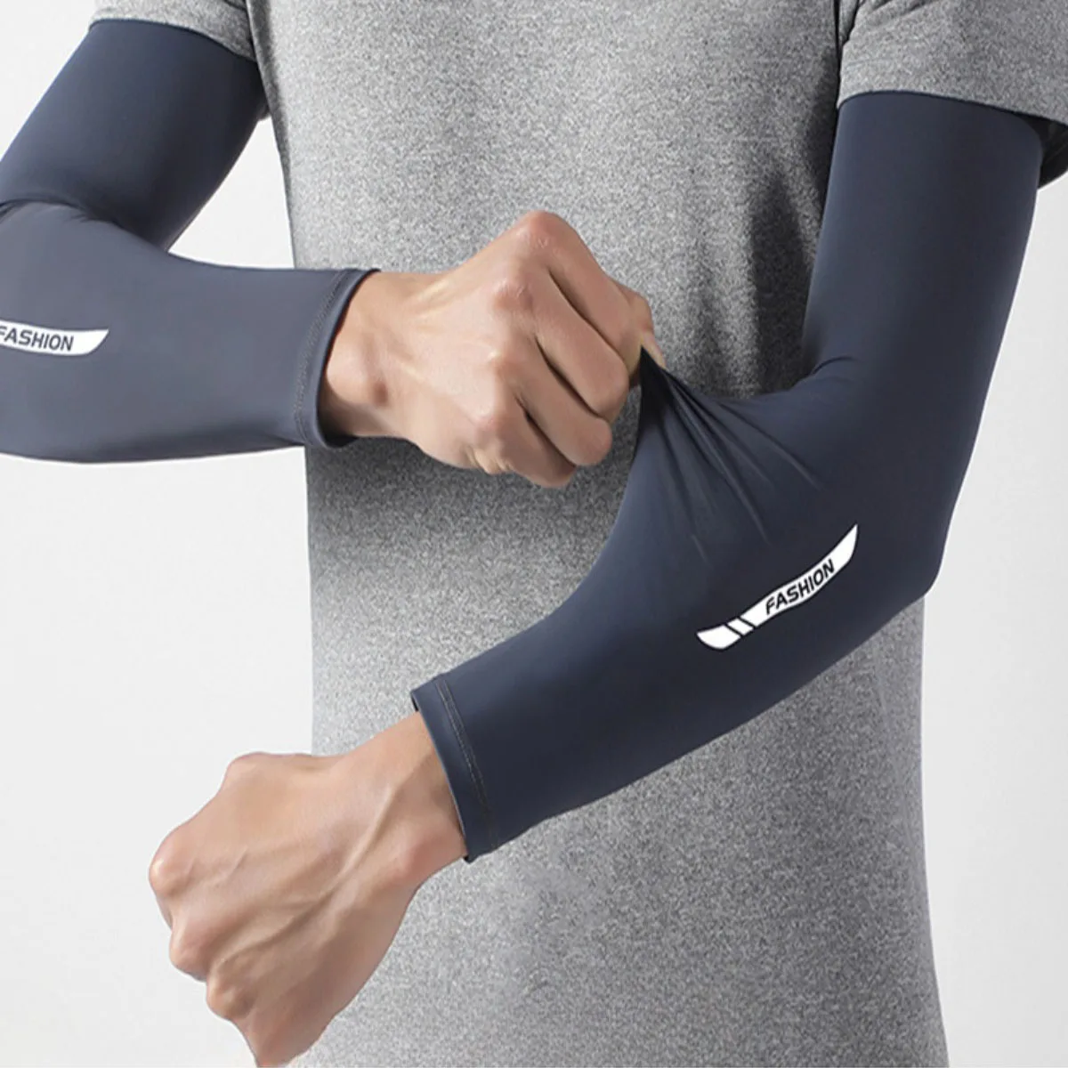 1 par de mangas protetoras de verão, mangas de seda gelo masculinas plus size, proteção para os braços, luvas de proteção uv, mangas de braço, secagem rápida, aquecedor de braço