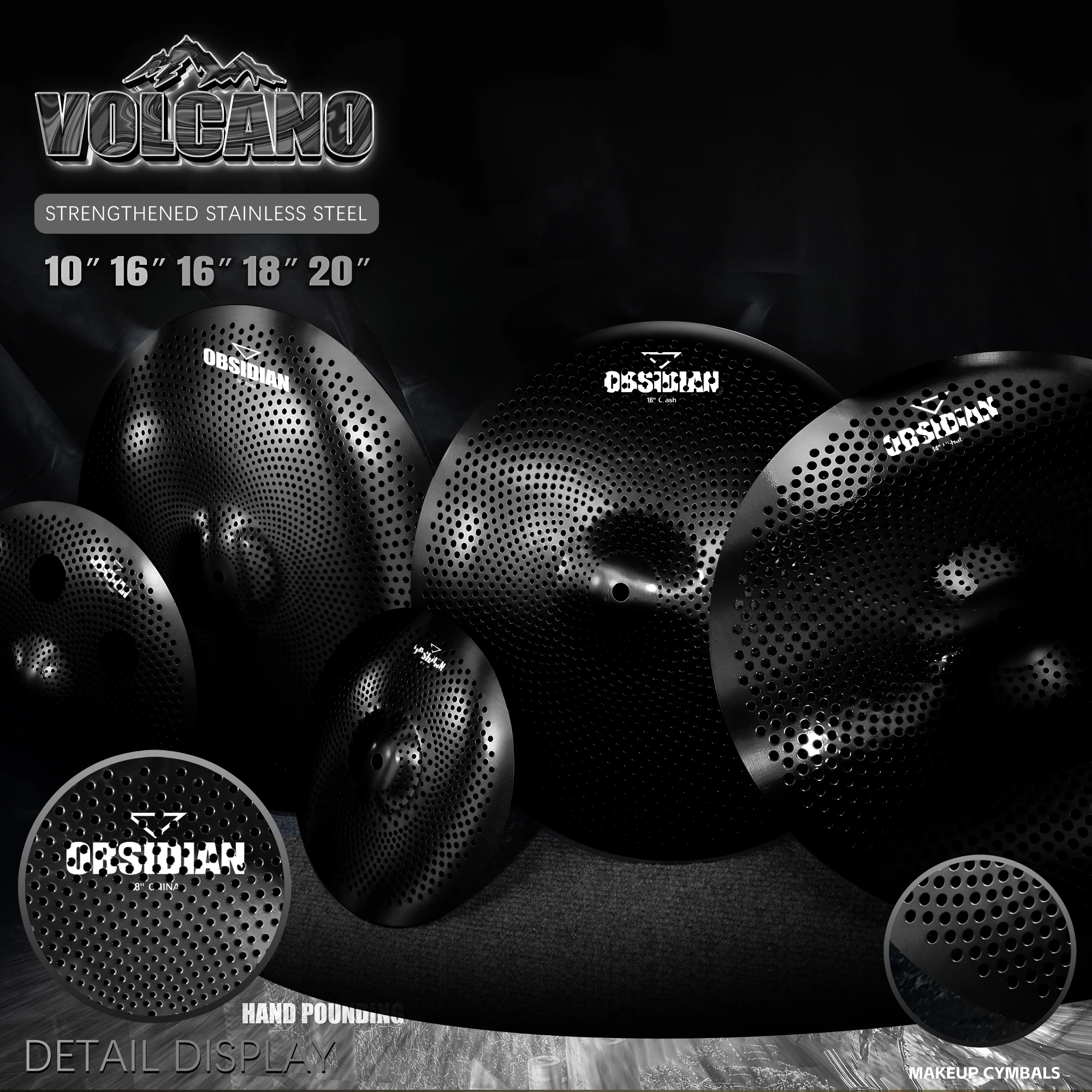 14 Polegada mudo hi-hat 16 + 18 Polegada crash 20 Polegada passeio conjunto de pratos de bronze pacote tambores de baixo volume gong & pratos"