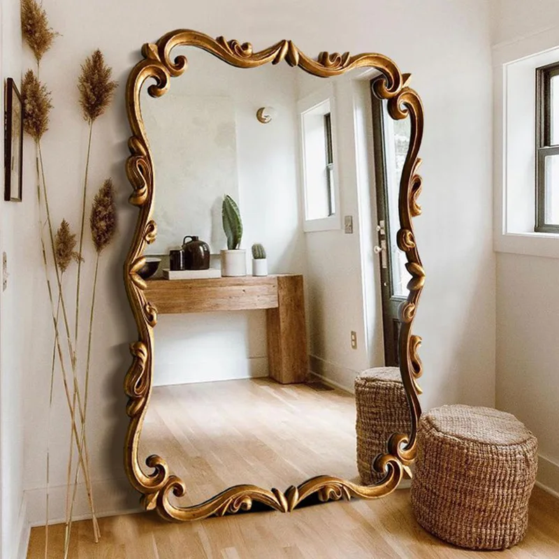 Design espelhos de maquiagem corpo inteiro princesa apartamentos exclusivos grande espelho de parede alto europeu dourado miroir sur pied móveis para casa