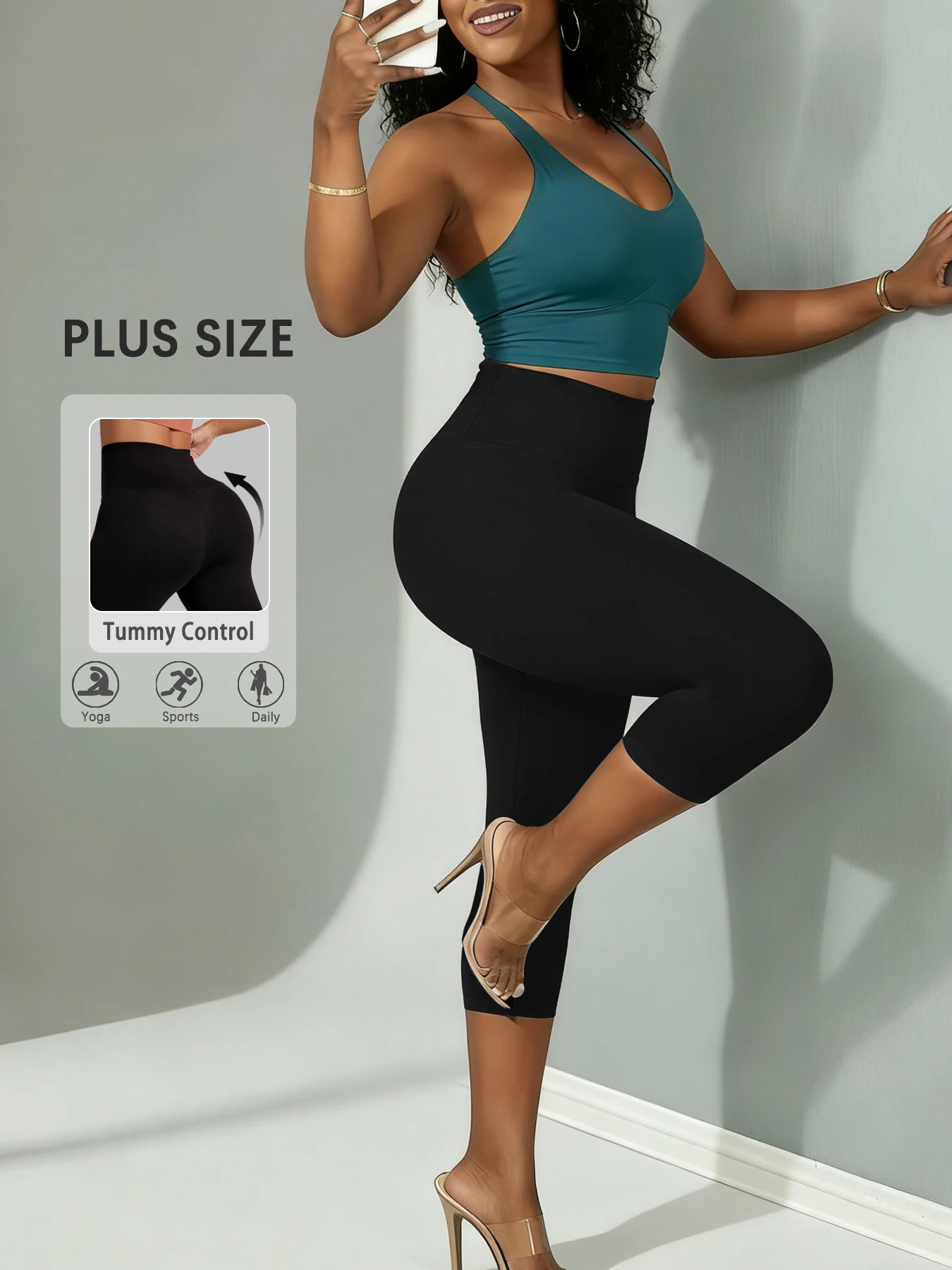 Leggings plus size para mulheres, super macias, cintura alta, controle de barriga, yoga, calças capri, sem transparência, treino, corrida