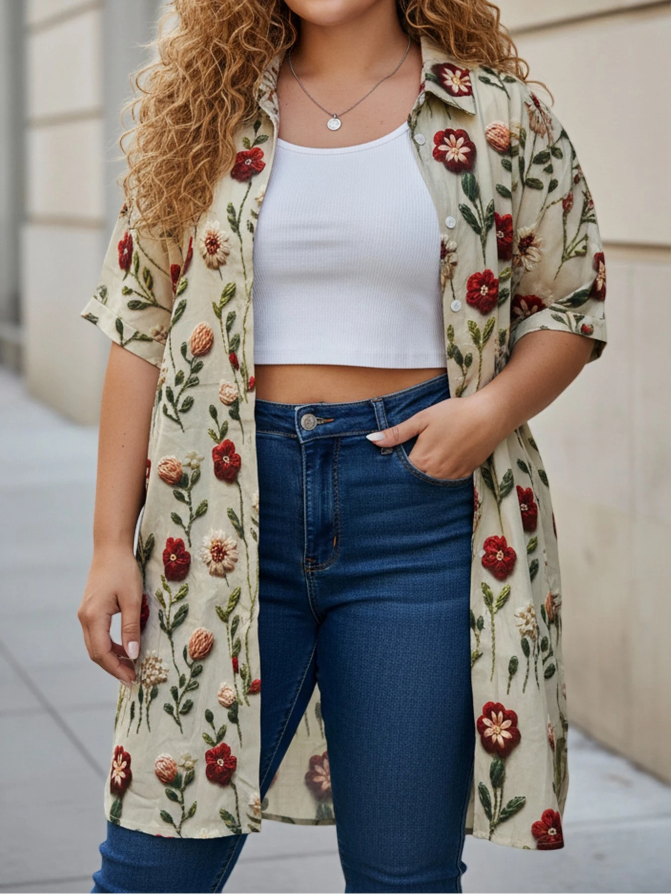 Estilo de roupa de trabalho casual e elegante feminino plus size, adequado para festas de chá da tarde, férias e passeios na praia, com top com estampa de laço, estilo simples, para uso diário, camisa sem costas