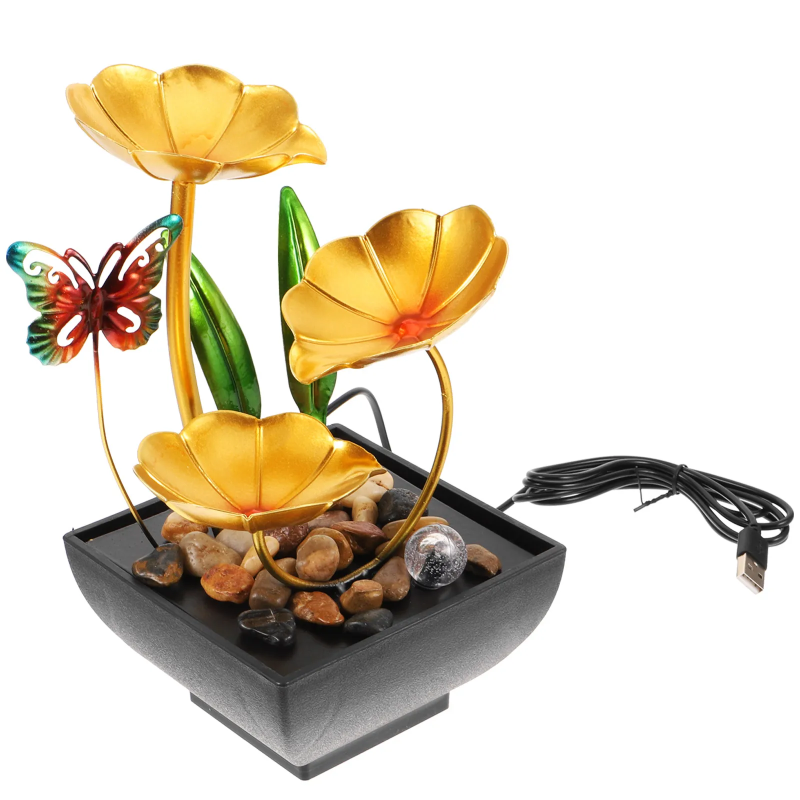Fonte de Água Interna com Artesanato em Resina e Som Relaxante para Decoração de Escritório e Quarto, Plugue Americano AC 110V