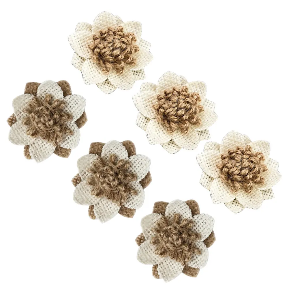 6 Peças de Flores de Renda de Serapilheira em Juta Natural, Kits de Artesanato DIY, Acessórios Florais Estilo Vintage para Decoração de Casamento, Broches e Chapéus