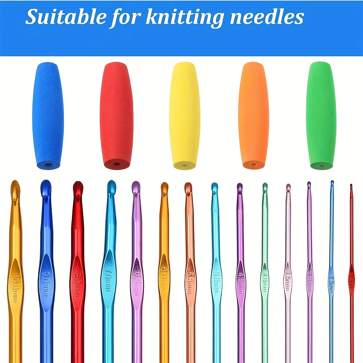 9 pçs ganchos de crochê coloridos agulhas de tricô de plástico conjunto 3.0mm a 12.0mm design ergonômico leve para projetos de renda de camisola