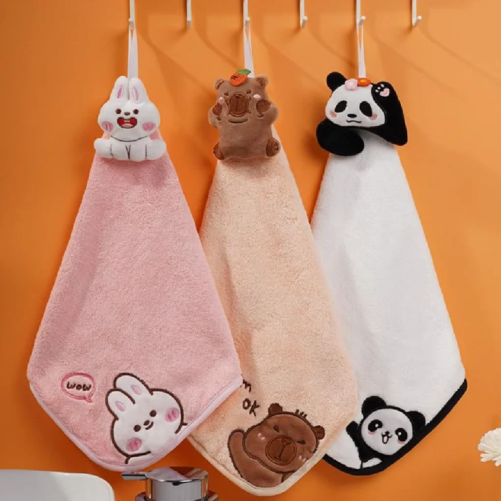 Toalha de mão decorativa de desenho animado, adorável formato de animal, tecido macio, secagem rápida, prática para cozinha, banheiro, decoração de casa