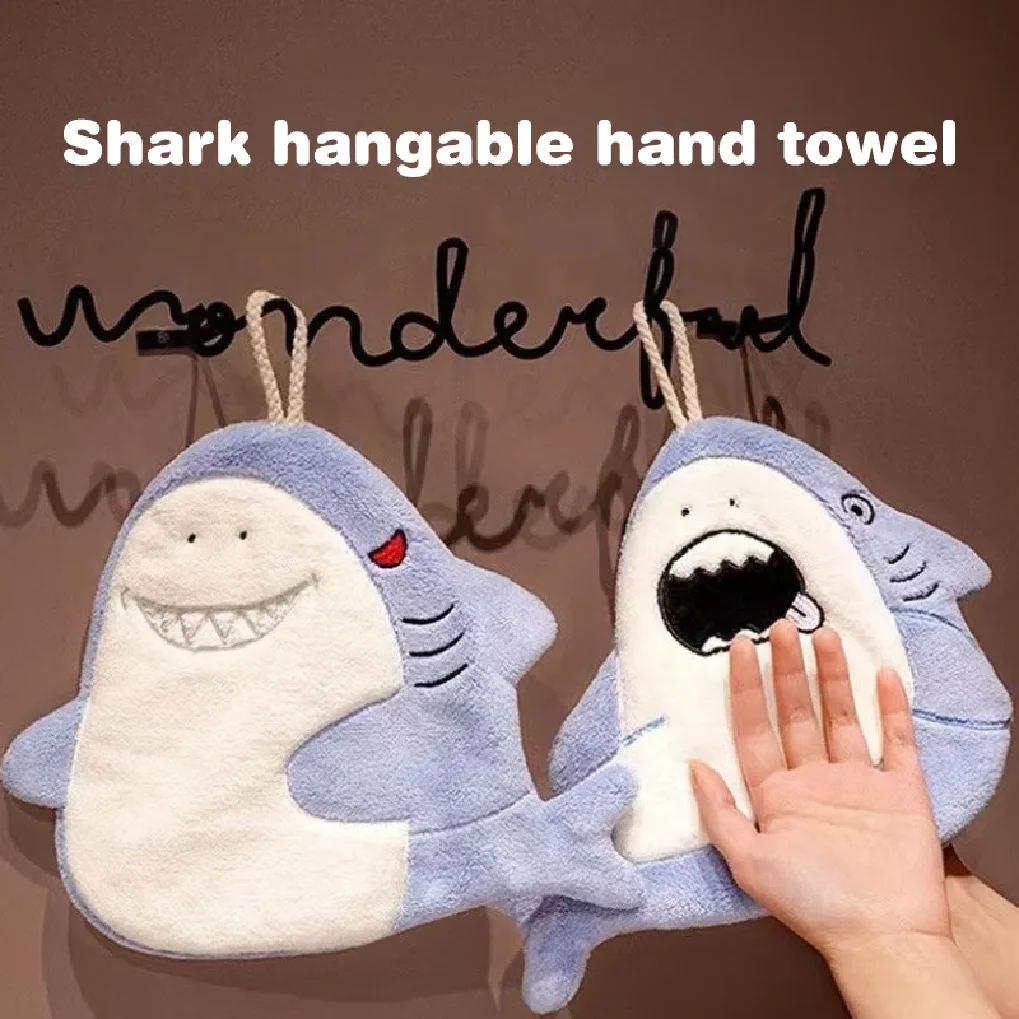 Toalha de Mão de Desenho Animado de Tubarão Fofo, Toalha de Cozinha de Secagem Rápida, Pano de Limpeza de Veludo Coral Absorvente, Toalha Suspensa, Acessórios de Banheiro