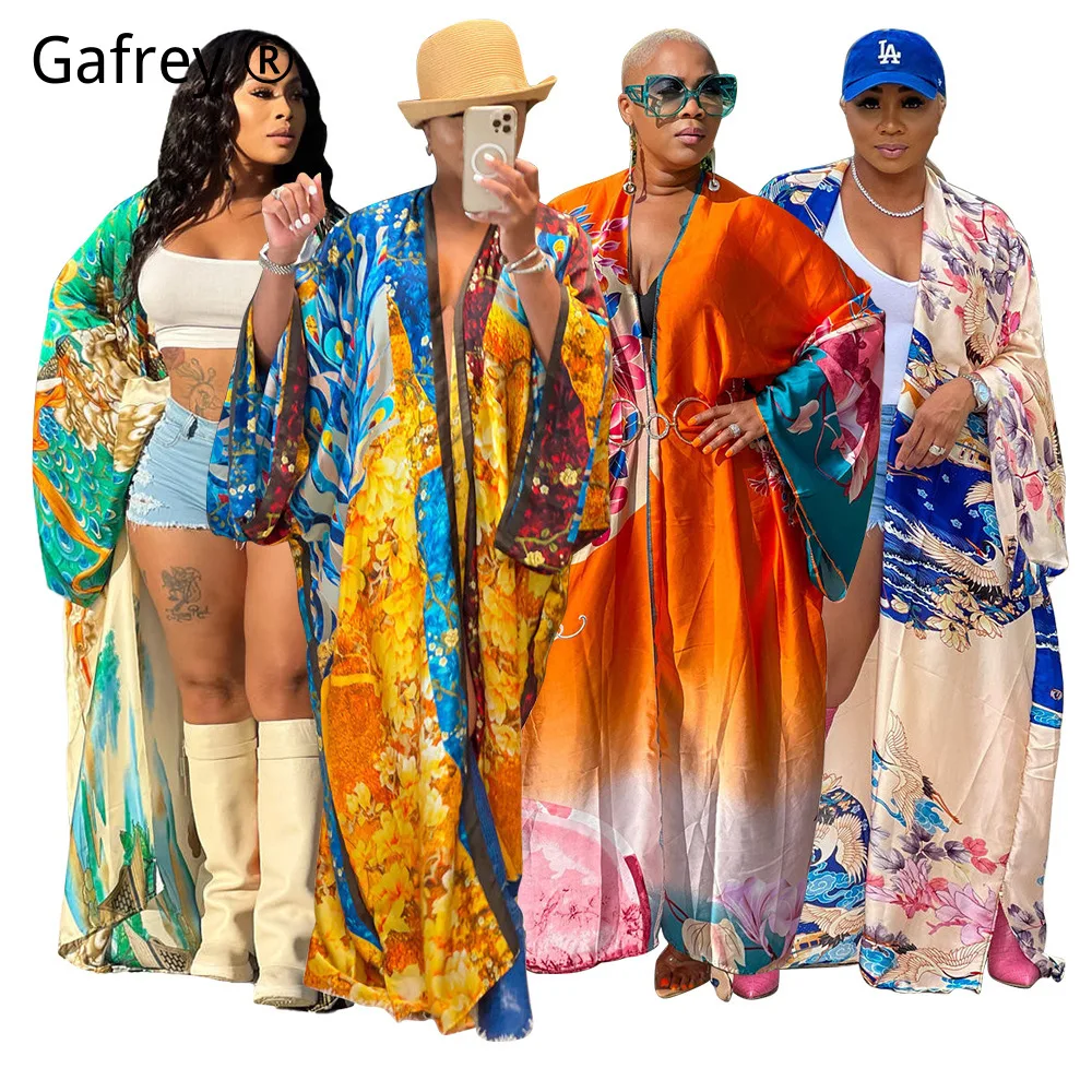 Casaco Trench Plus Size Feminino 2026 em Seda Sintética com Estampa Multicolorida, Moda Casual, Jaqueta Leve e Brilhante
