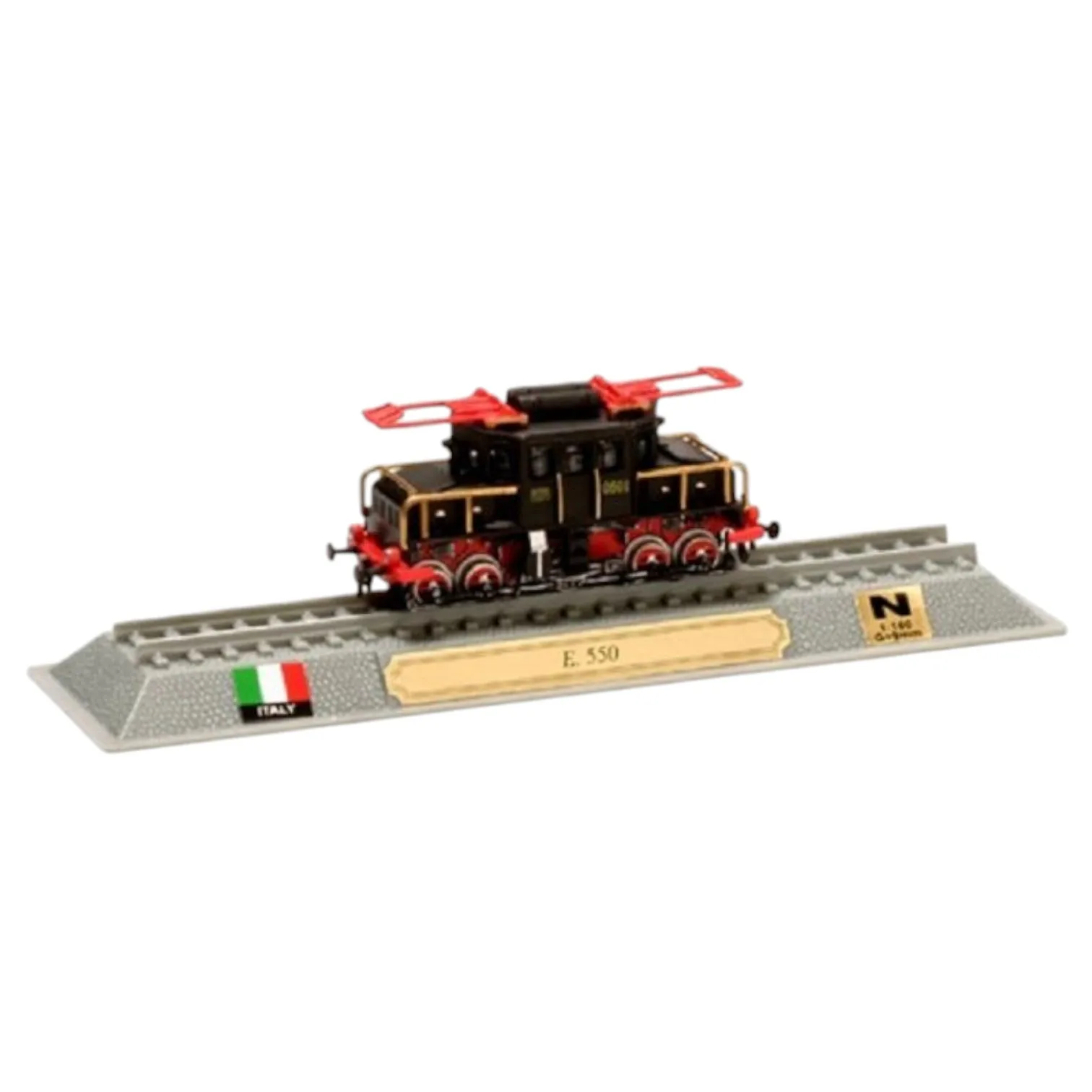 Loc091 Del Prado, Modelo Estático de Locomotiva E.550 Itália, Escala N 1:160, Miniatura Diecast Sem Motor, Coleção Mundial de Locomotivas, Embalagem Original com Base e Bandeira do País