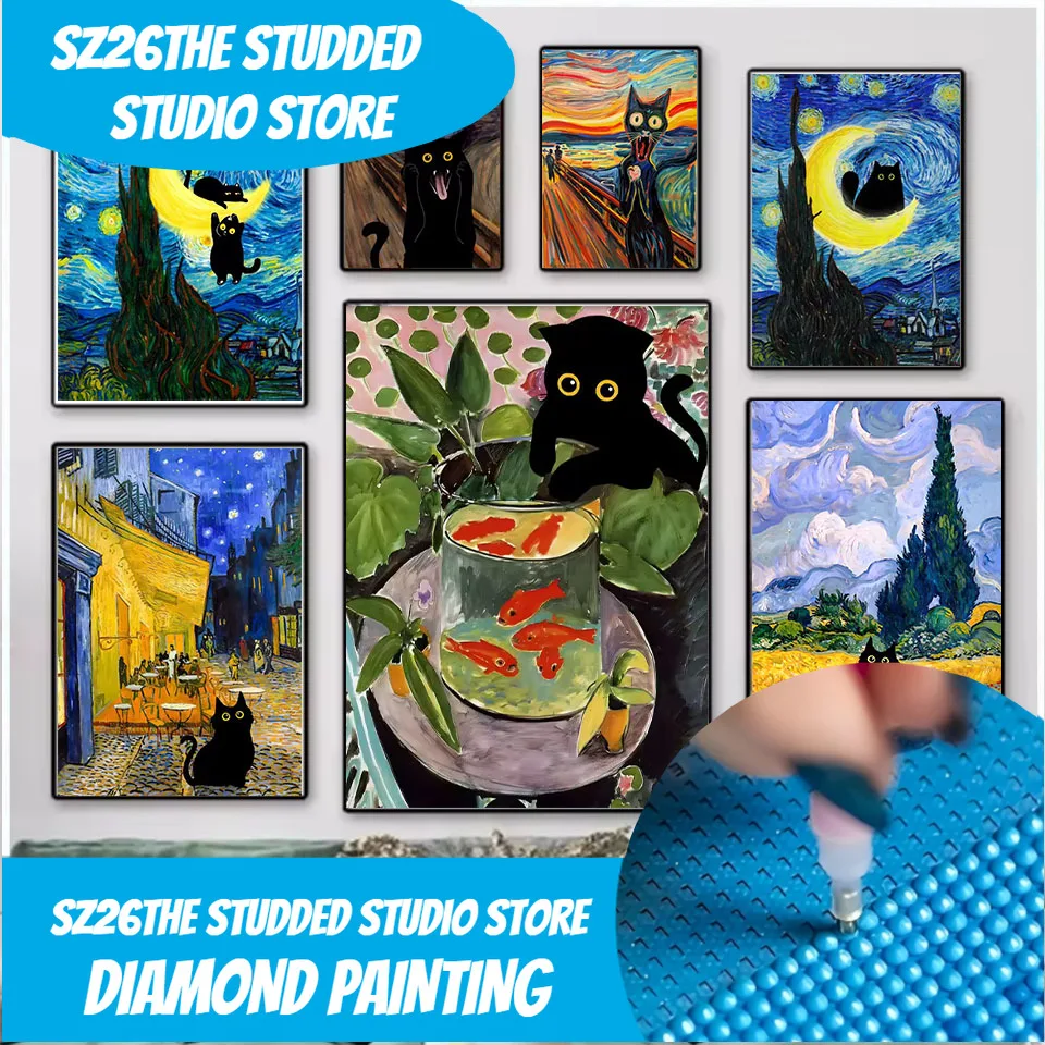 Para sempre jovem diy pintura diamante menina e gato banda quadrada completa ab cristal diamante bonito artesanato diamante decoração para casa presente novo